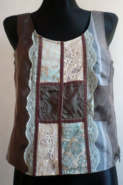 Duńska bluzka uszyta z różnych rodzajów tkanin+koronka+aksamitki.Zamek z boku.Podszewka.