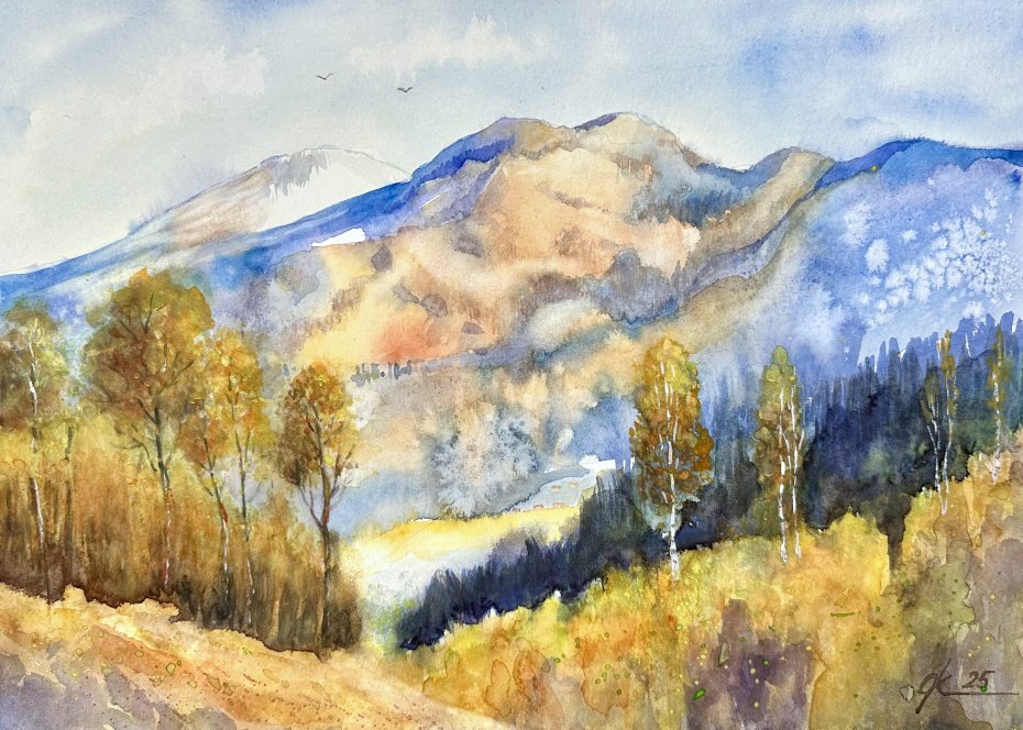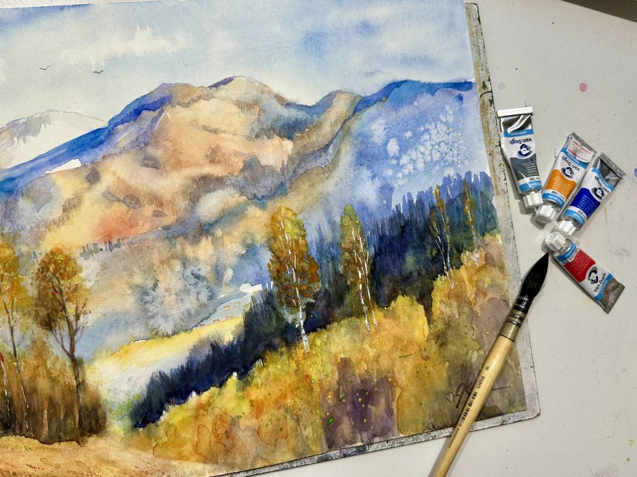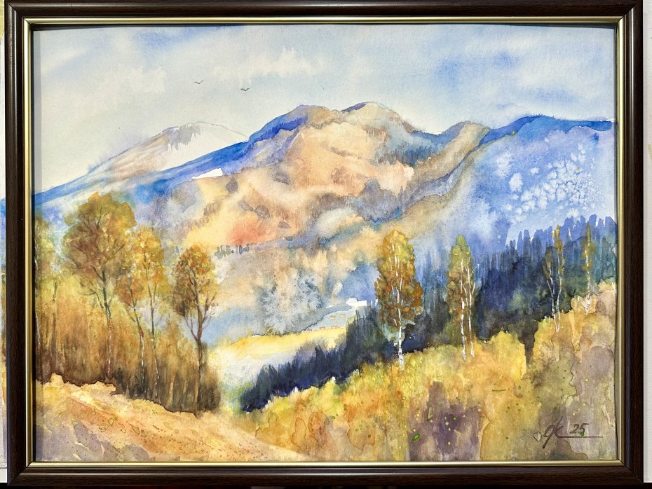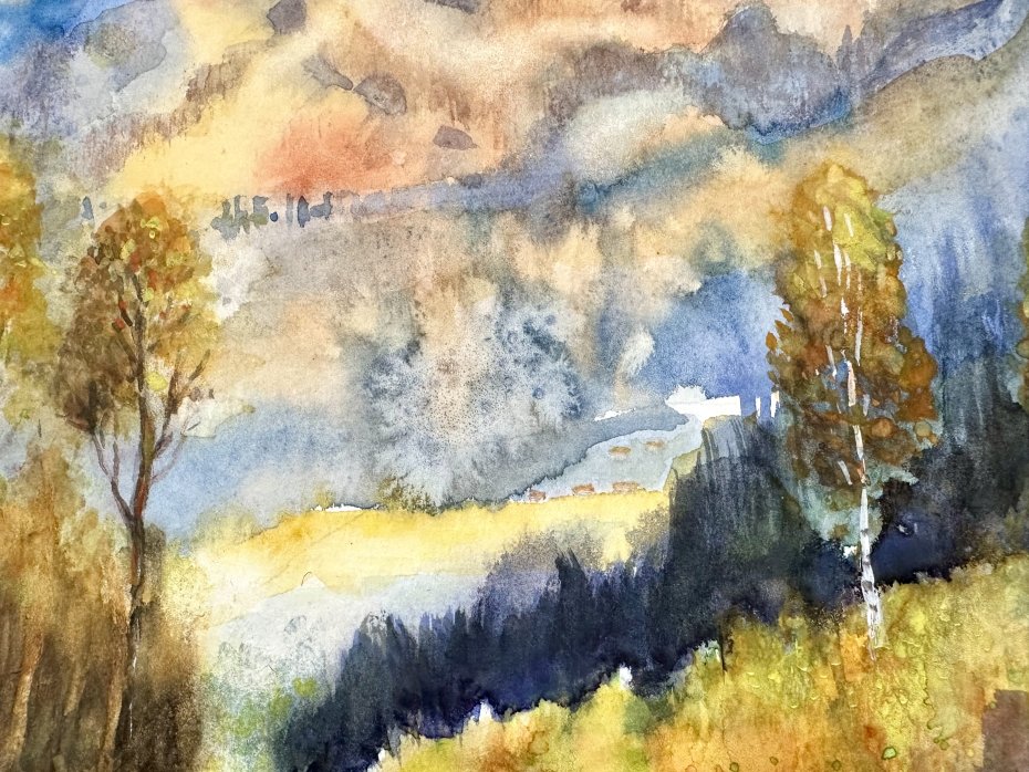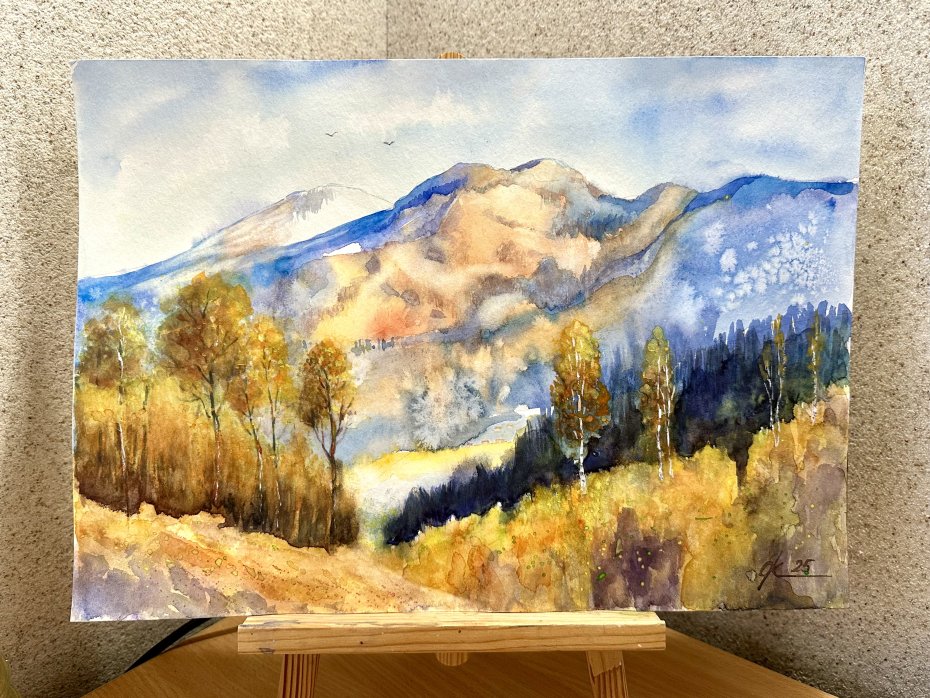 Jesień w górach originalna akwareli A3 ręcznie malowana.