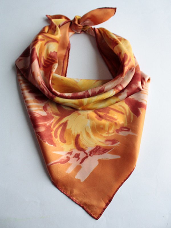 Satynowa chusta w malarski kwiatowy wzór w jesiennych barwach.