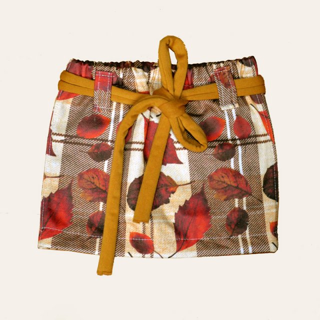 Śliczna spódniczka wykonana została z grubej tkaniny bawełnianej imitującej len. Tkanina z autorskim nadrukiem w piękne jesienne liście.