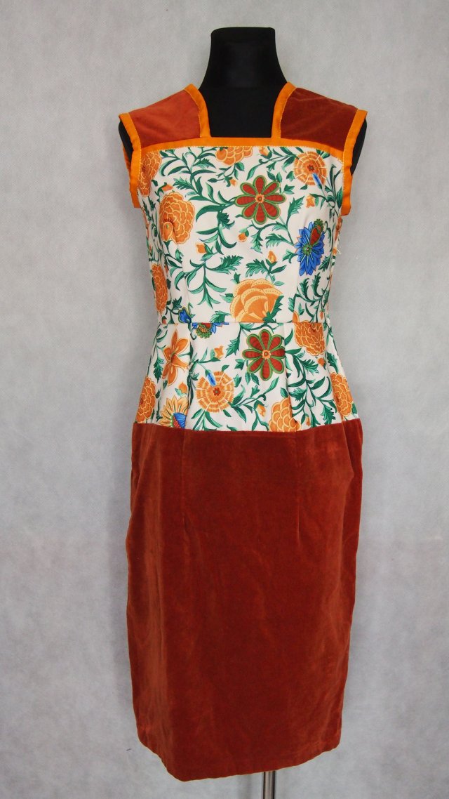 Sukienka w dolnej części sztruksowa. Grubsza, w jesiennych kolorach.