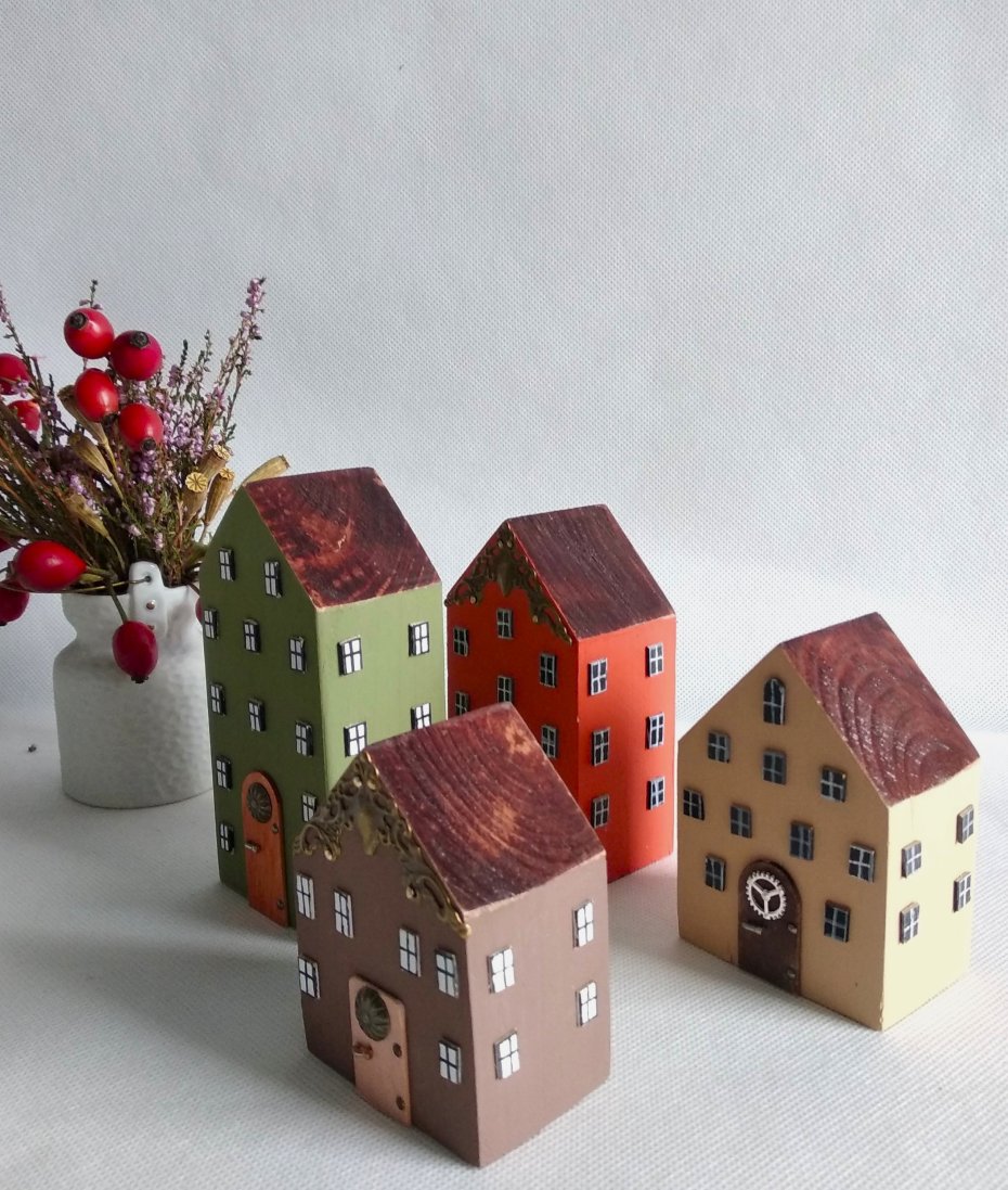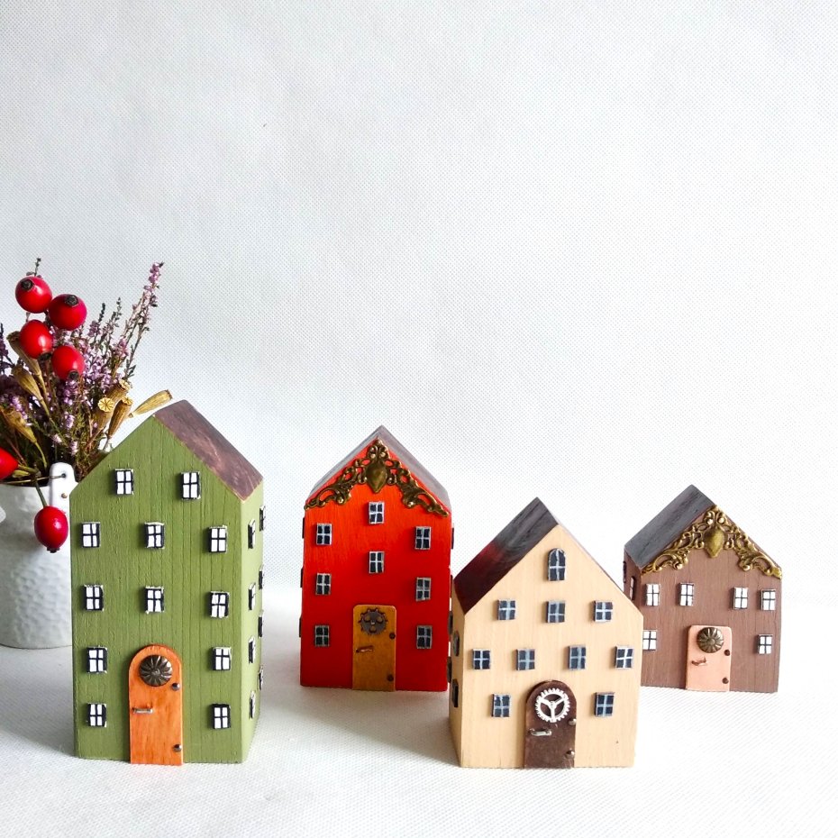 Tagi: #dekoracja pokoju, #drewniane domki dekoracyjne, #jesienne domki drewniane, #ozdobne rękodzieło