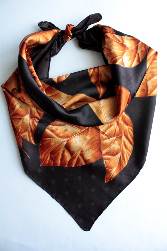 Oryginalna chusta w wytłaczane kwadraty. Materiał oceniam na jedwab (brak metki, brzeg jest rolowany).