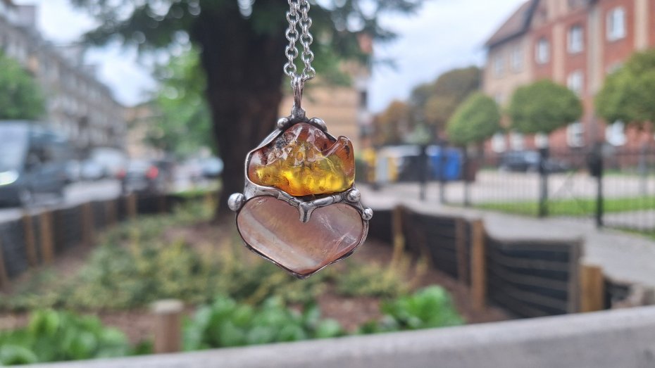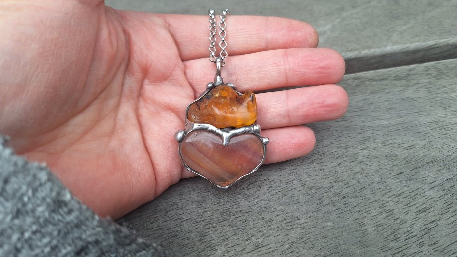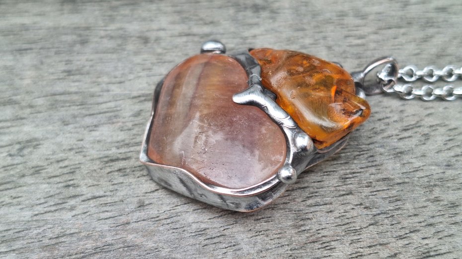 Tagi: #fluoryt, #kolorowy wisiorek, #wisiorek z bursztynem, #wisiorek z kamieniem