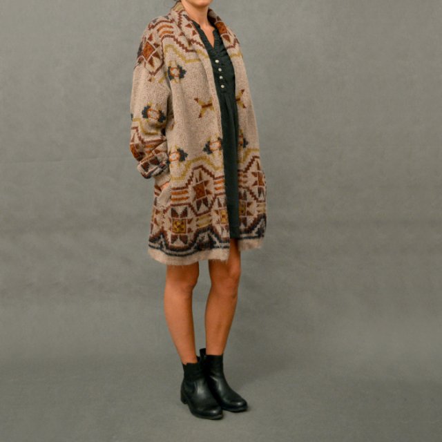Cudny, jesienny, ciepluchny sweter. W ciekawy wzór, włochaty od moheru. Nie jest zapinany, posiada kieszenie. Polecam szczególnie.