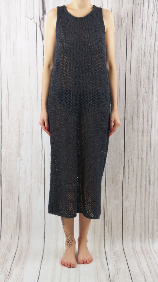 Przepiękna surowa sukienka od projektanta Johna Rocha. Materiał: 50% bawełna, 50% wiskoza. Kolor: grafit. Idealnie komponuje się z długimi cięższymi butami, martensami, ale też z sandałami.