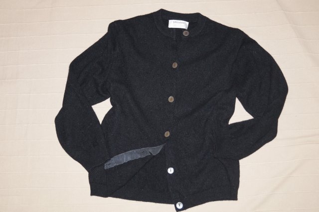 Czarny kaszmirowy sweterek renomowanej szkockiej marki JOHNSTONS ( made in Scotland) w rozmiarze S/M, dzianina świetnej jakości, mięsista, zapinany na 5 guziczków, 100% kaszmir