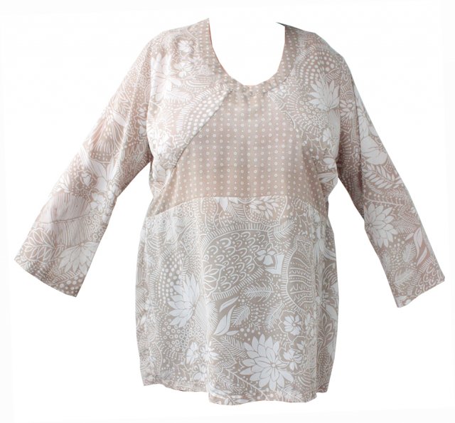 Zwiewna tunika firmy JOSIE dla Pani o pełnych kształtach. Tunika zaprezentowana na osobie noszącej rozmiar 46.