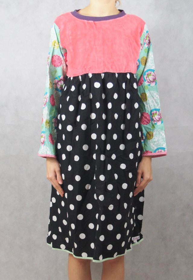 Urocza sukienka marki Just Girly. Z łączonych materiałów - dół i rękawy bawełniane, góra z pluszowego materiału.