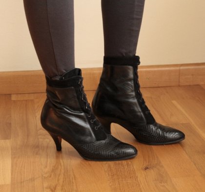 Oryginalne buty vintage w stylu starych strojów kabaretowych. Wykonane z 3 rodzajów skóry, bardzo solidne. Mają kilka otarć, ich stan oceniam na bdb-