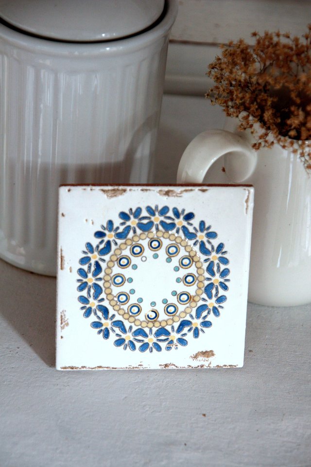 Uroczy, biały ceramiczny kafelek z ciekawym wzorkiem. Może być jako podstawka pod gorący kubek:)