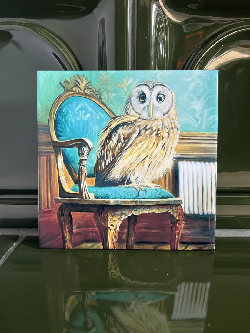 5.  > Kafelka ceramiczna, płytka, autorski kafelek z ptakiem - sowa (nr 7098799)