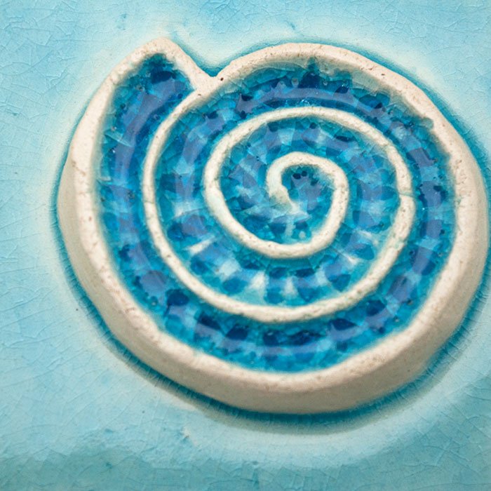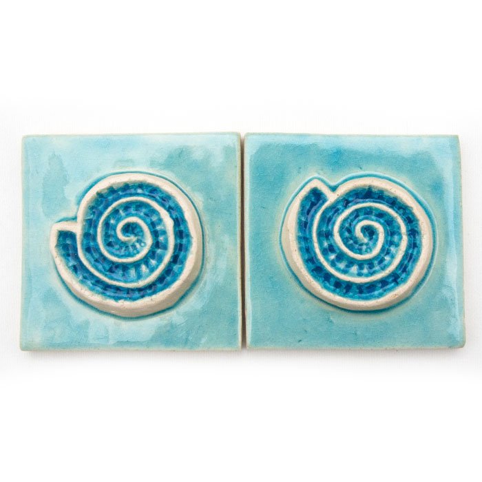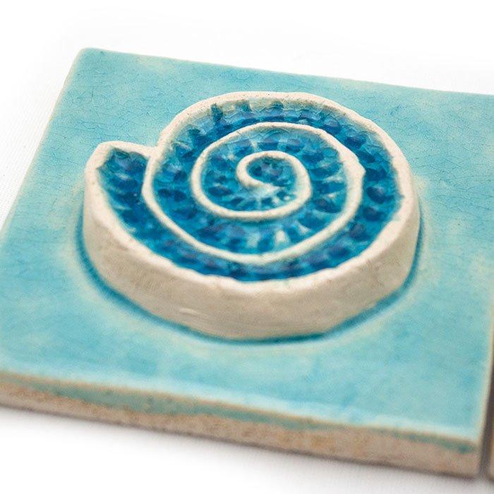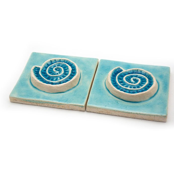 Dwa ręcznie wykonane ceramiczne dekory, z amonitami.