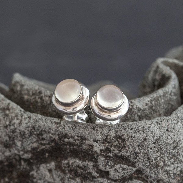 Klasyczne kolczyki sztyfty wykonane ze srebra próby 925 oraz kamieni księżycowych (6mm). Wielkość kolczyków 9 mm. Kolczyki są ozdobnie zapakowane.