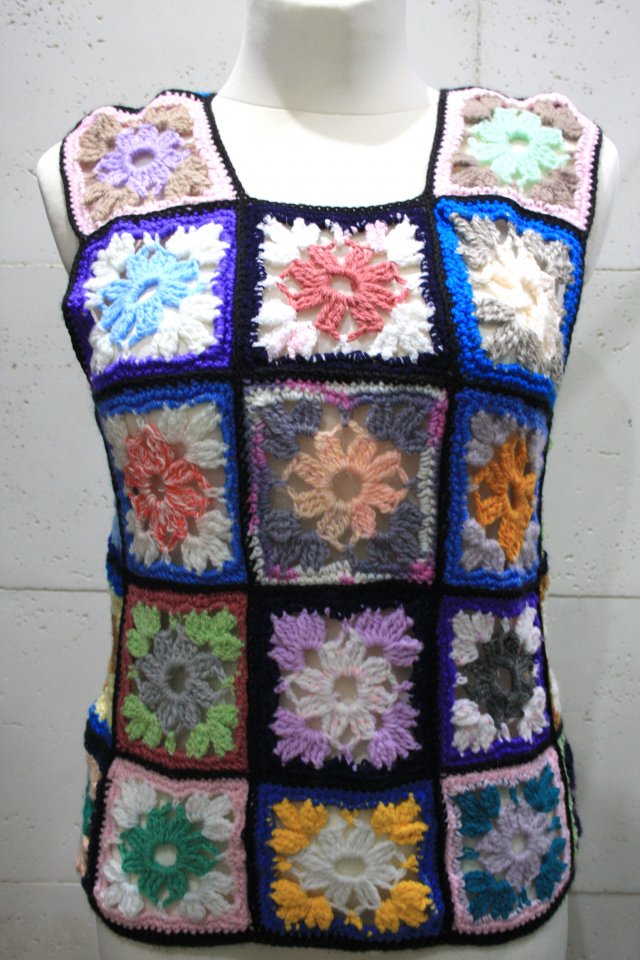 kolorowa krótka patchworkowa kamizelka, brak metki ze składem i rozmiarem