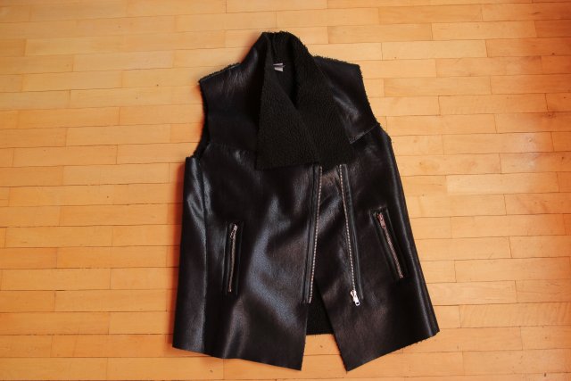 ekstrawagancka kamizela z ekologicznej skóry z wewnętrznym kożuchem , do noszenia na swetry, płaszcze,kurtki, rozmiar 44,ale dla osób z fantazją 38,40,42 ponieważ dobrze zaaranżowana wygląda świetnie,raz ubrana
