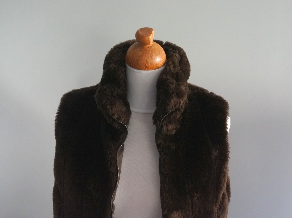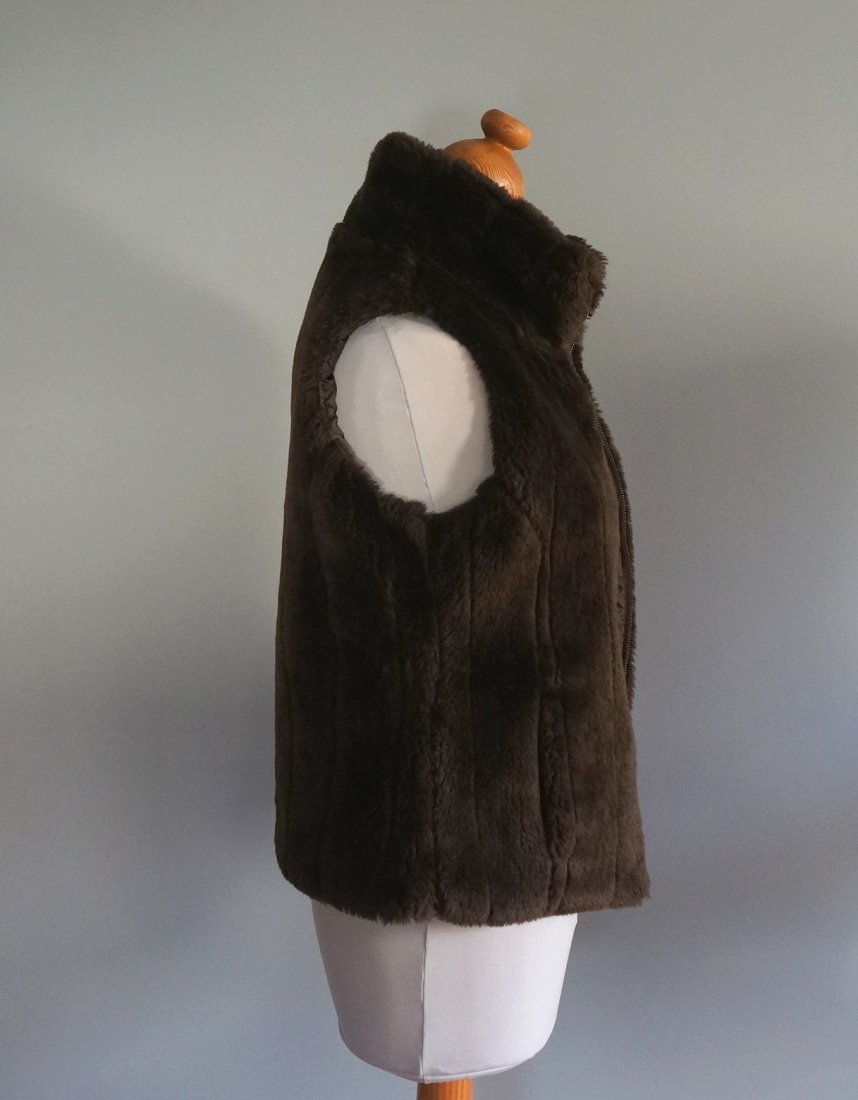 Kamizelka New Look. Sztuczne futerko. Kolor - ciemny brąz. Wysoka stójka - 9 cm. Z przodu dwie wpuszczane kieszonki. Po całości zapinana na zamek błyskawiczny. Przyjemna w dotyku. Cała na podszewce.