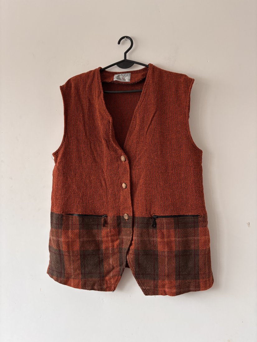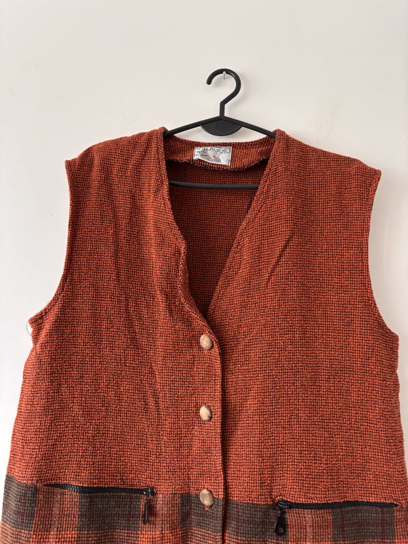 #kamizelka #kamizelkaDamska #bezrekawnik #villaggio #madeinfrance #ceglasty #brązowy #jesiennyStyl #rustykalny #vintage #retro #cottagecore #boho #ciepłaKamizelka #krata #przytulnyStyl #naJesień #naZimę #damskamoda #modaVintage #stylFrancuski #melanż #wyjątkowa #kieszenie #zapinanazguziki #klasyczna #oversize #stylComfort #unique #slowfashion #vest #womensvest #sleevelessjacket #frenchstyle #vintagevest #rusticstyle #warmvest #brownvest #checkedbottom #pockets #zipperedpockets #buttonedvest #cottagecorefashion #retrostyle #fallfashion #winterlayer #texturedfabric #classicvest #frenchbrand #oversizevest #comfortablewear #warmlayer #uniqueitem #slowfashionstyle #qualityfabric #madeinfrancefashion #womenclothing #vesttop