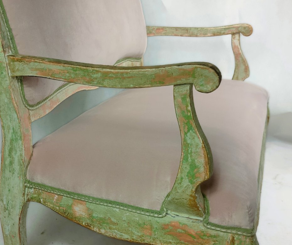 Tapicerka także przeszła kompleksową renowację, a do jej wykończenia wykorzystano w kolorze pudrowego różu delikatną w dotyku tkaninę.