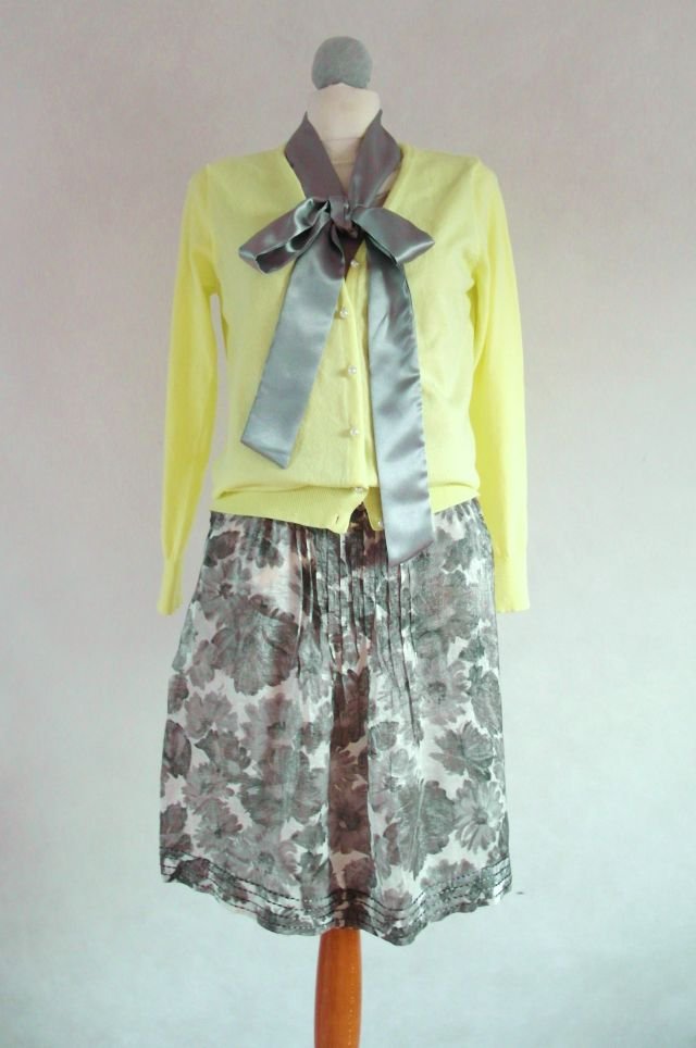 ożywiający kolor - kanarkowy, cytrynowe lody.. zapinany na kuleczki perłowe.pasuje do wielu kolorów - biel, szarość, beż, taupe, khaki, granat, srebro.