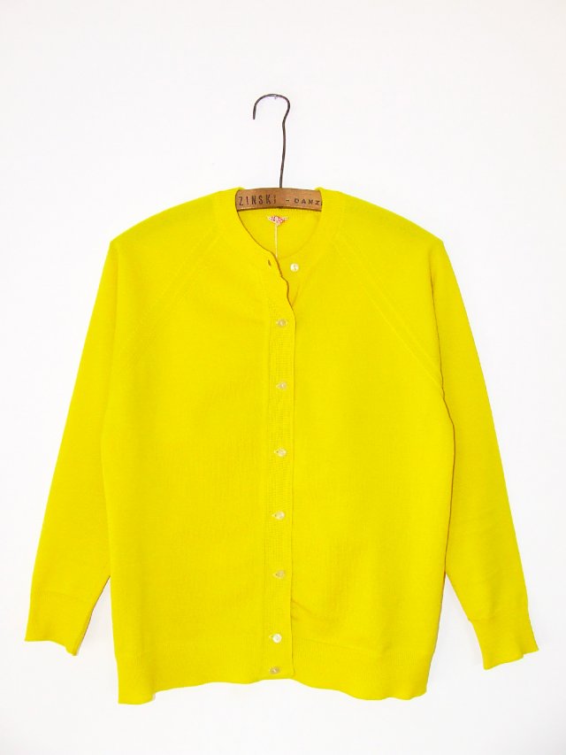 Rozpinany bistorowy sweterek o bardzo intensywnym, pięknym żółtym kolorze. Lata 60/70.