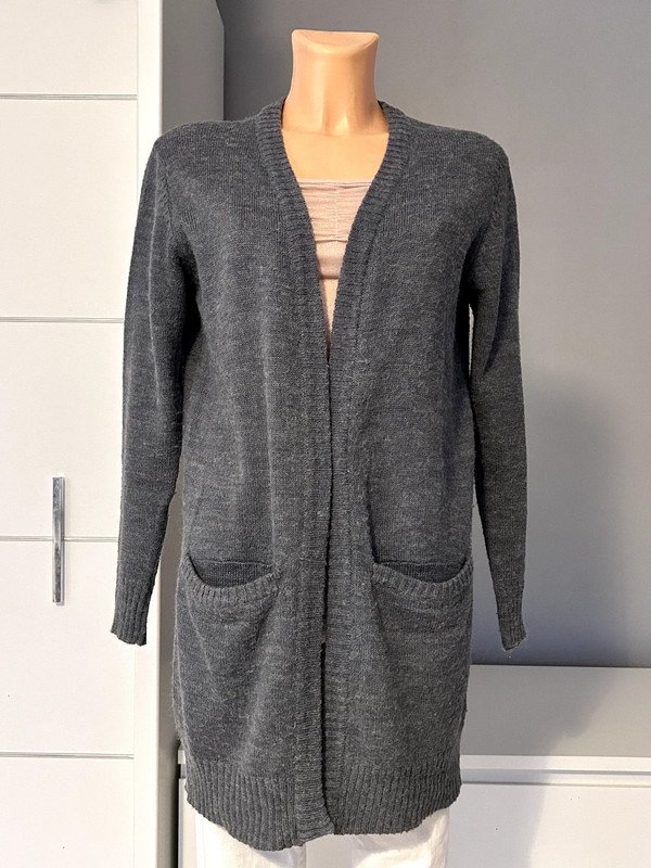 Kardigan narzutka firmy VRS Woman. Rozmiar 36 S. Z przodu dwie nakładane kieszenie. Wymaga delikatnego ogolenia golarką.