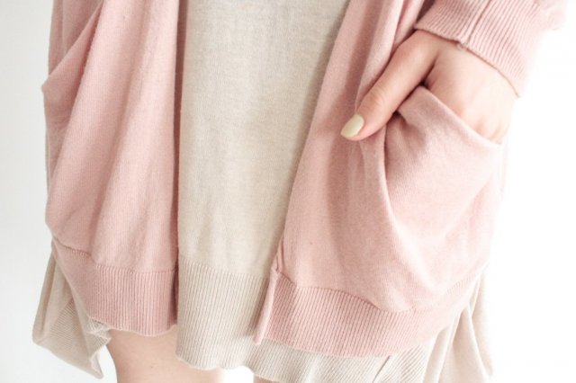 Miękki, dłuższy kardigan w stonowanym odcieniu pudrowego różu. Będzie wyglądał doskonale w zestawieniu ze stonowaną sukienką lub jeansami i topem. Kardigan nie jest zapinany ani wiązany. Poły z przodu miękko i swobodnie opadają, nie stykając się ze sobą na środku.