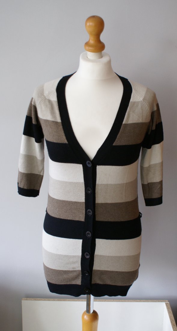 Kardigan marki George w kolorze kawy z mlekiem w czarne i białe paski