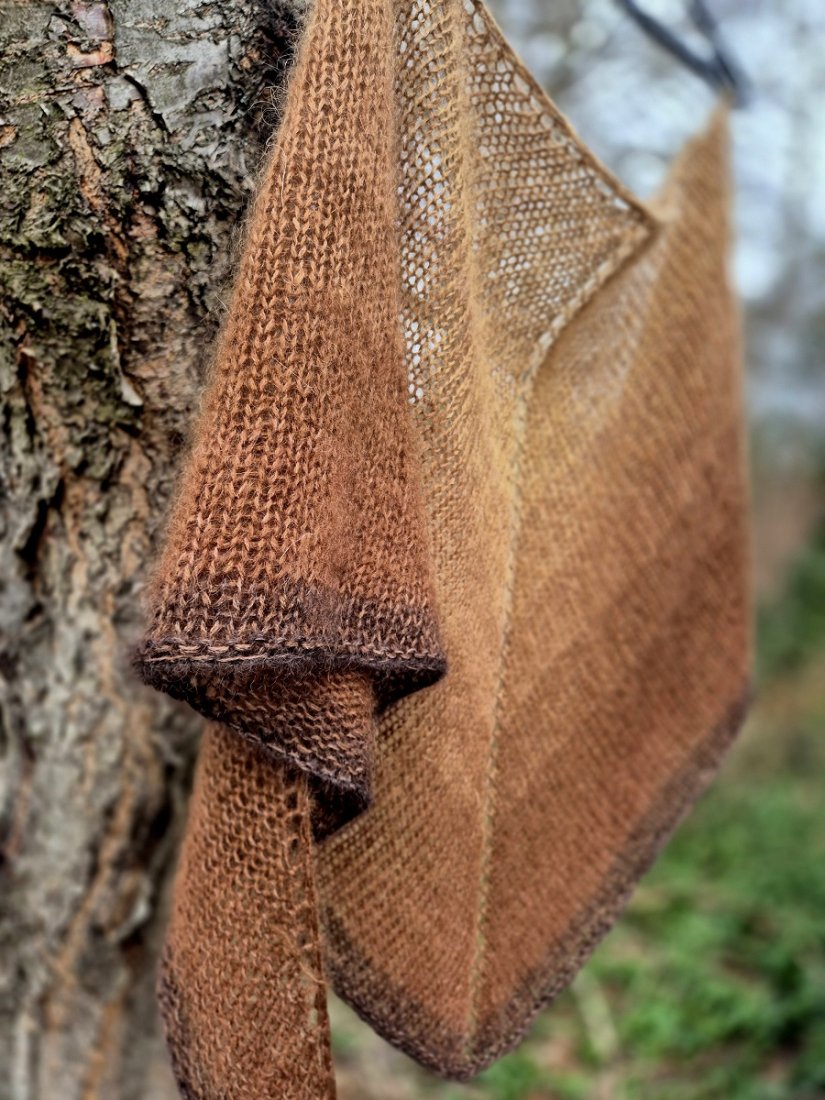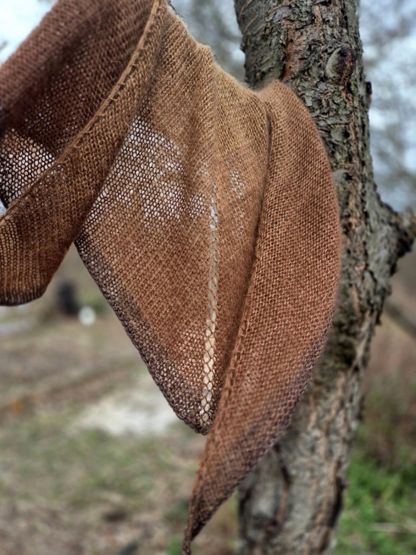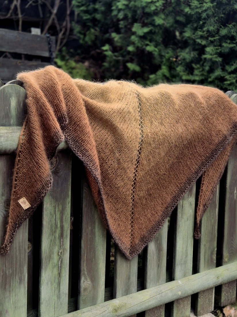 Ciepła, miękka, puszysta i bardzo lekka chusta, wykonana ręcznie na drutach z trzech cieniutkich cudownych włókien.