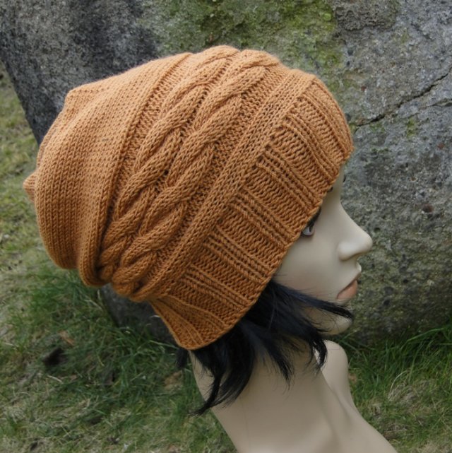 Czapa wykonana ręcznie na drutach z włoczki w kolorze karmelu (100% wełna) lekka, przyjemna w dotyku. Czapka posiada szew. Rozmiar czapki : obwód od 54 do 57 cm, wysokość ok. 32 cm. Bardzo twarzowa. Polecam.