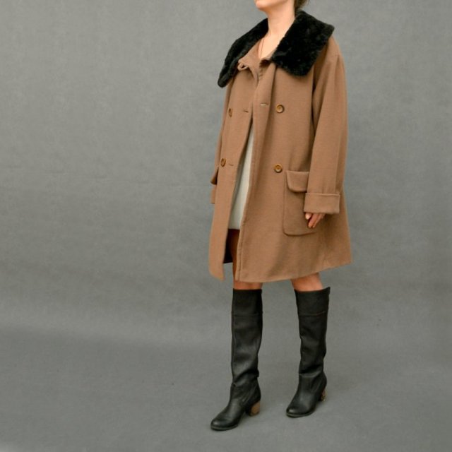 Śliczny płaszczyk vintage z efektownym kołnierzem. Zapinany na dwurzędowe guziki. Z kieszeniami, na podszewce. Z dużą ilością wełny i z kaszmirem.