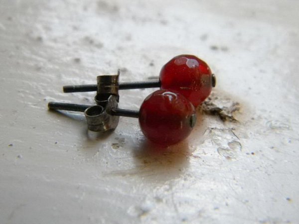 kolczyki,oksydowane srebro i karneol.srednica 6,5mm