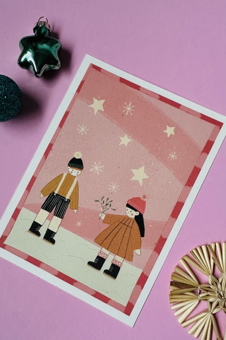 Kartka sprzedawana z kopertą. Może służyć jako kartka z życzeniami, albo mała świąteczna grafika.