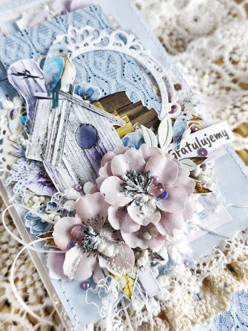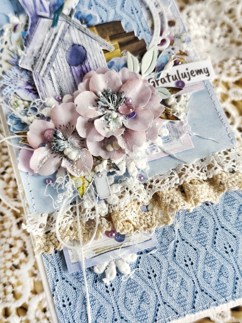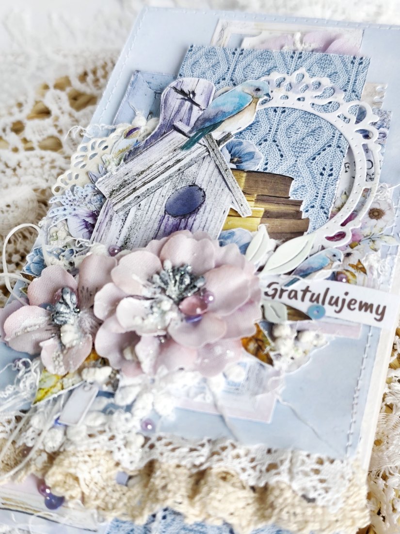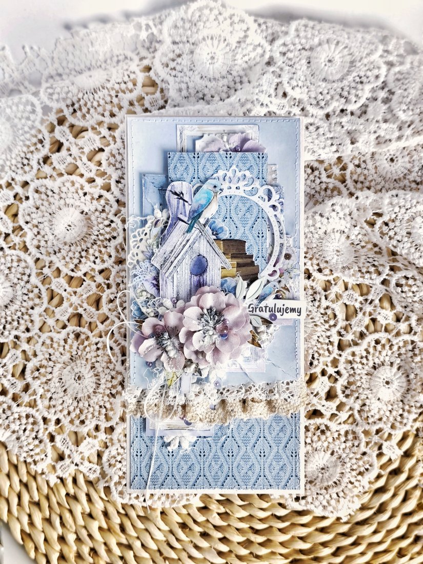 Każda kartka posiada unikalną kompozycję, wykonaną z delikatnej koronki oraz eleganckich kwiatków. Nie ma dwóch identycznych kartek — każda jest jedyna w swoim rodzaju.