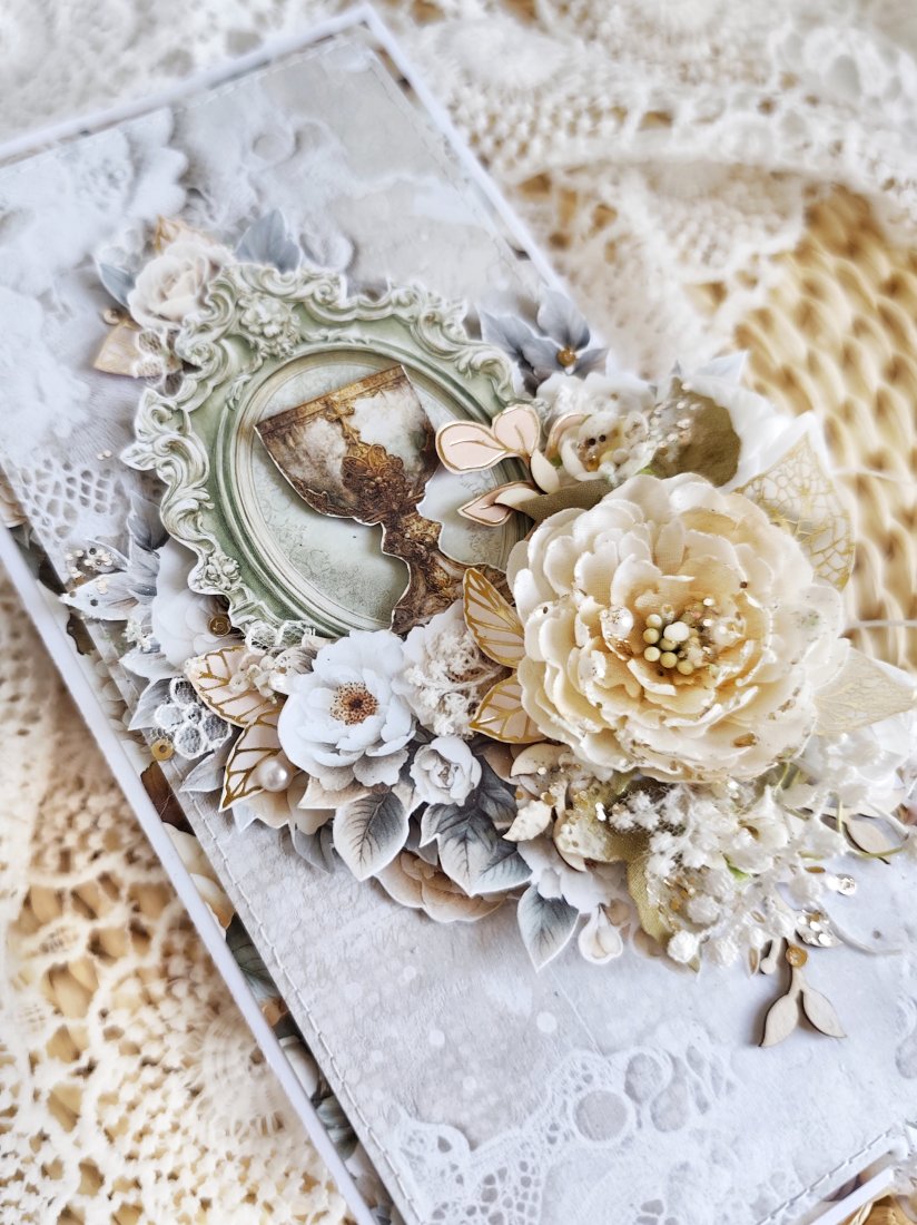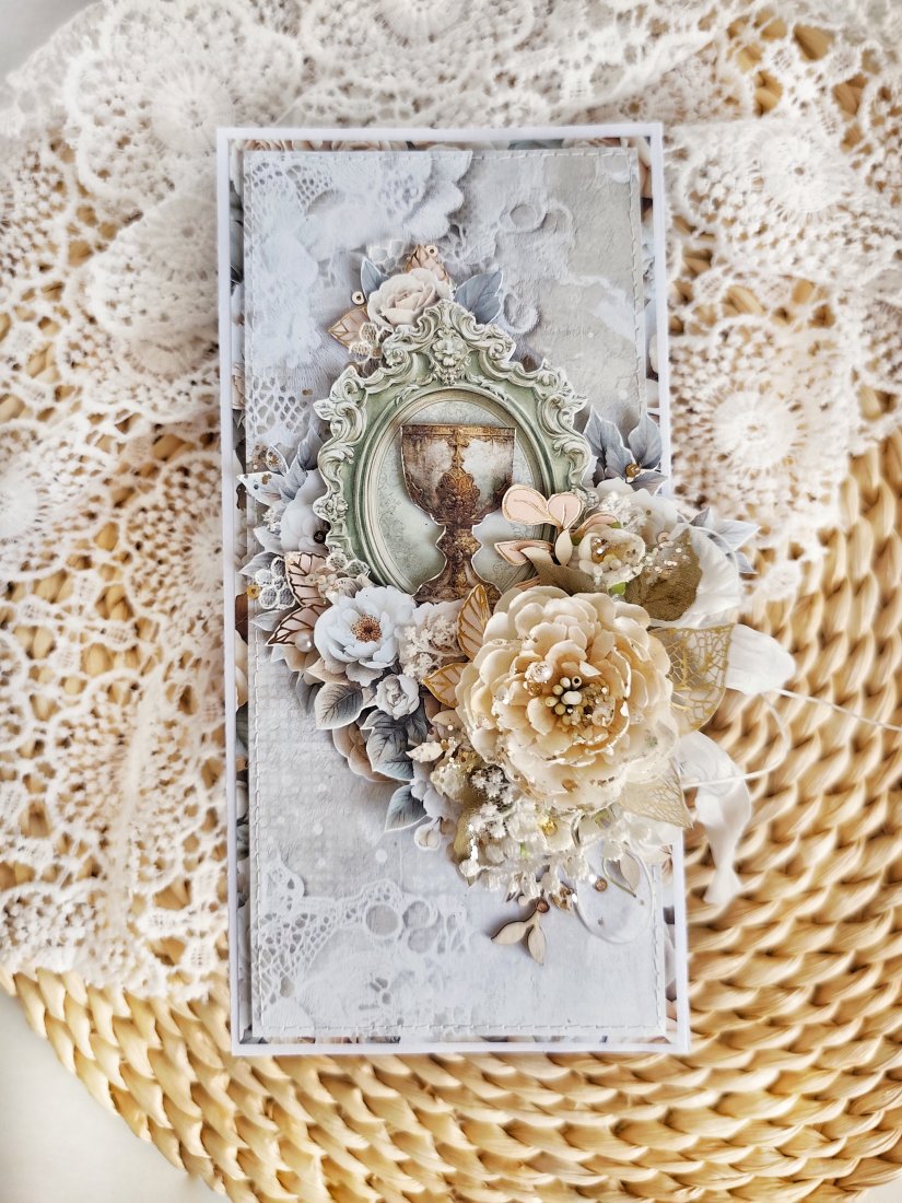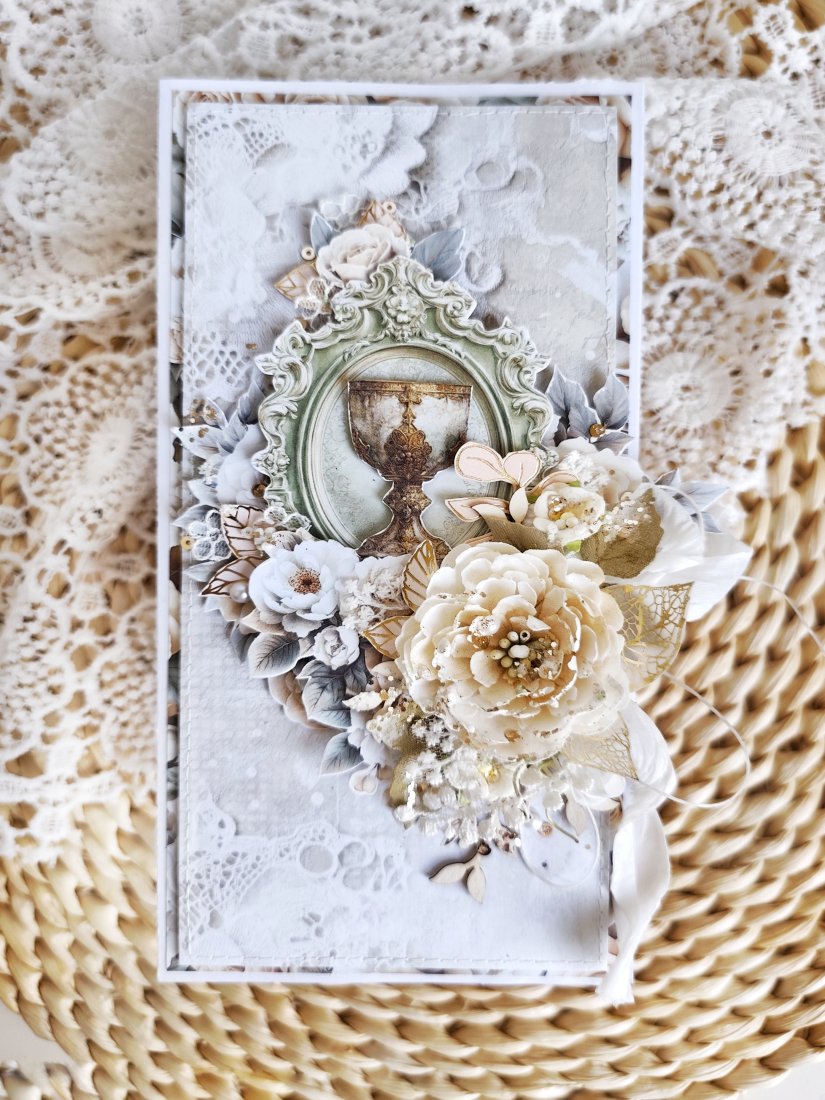 Każda kartka posiada unikalną kompozycję, wykonaną z delikatnej koronki oraz eleganckich kwiatków. Nie ma dwóch identycznych kartek — każda jest jedyna w swoim rodzaju.