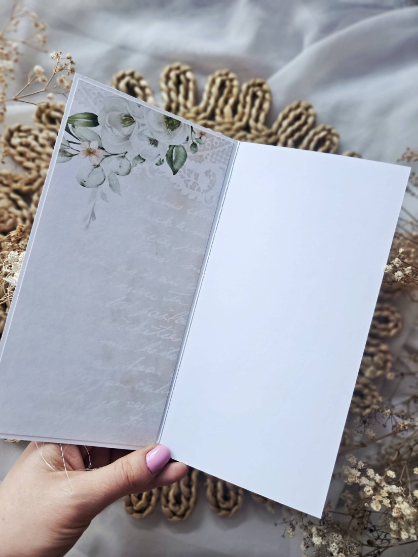 W środku miejsce na życzenia. Mogę przesłać ci propozycje do wyboru, wydrukować i wkleić twoje życzenia lub pozostawić miejsce puste do samodzielnego uzupełnienia.