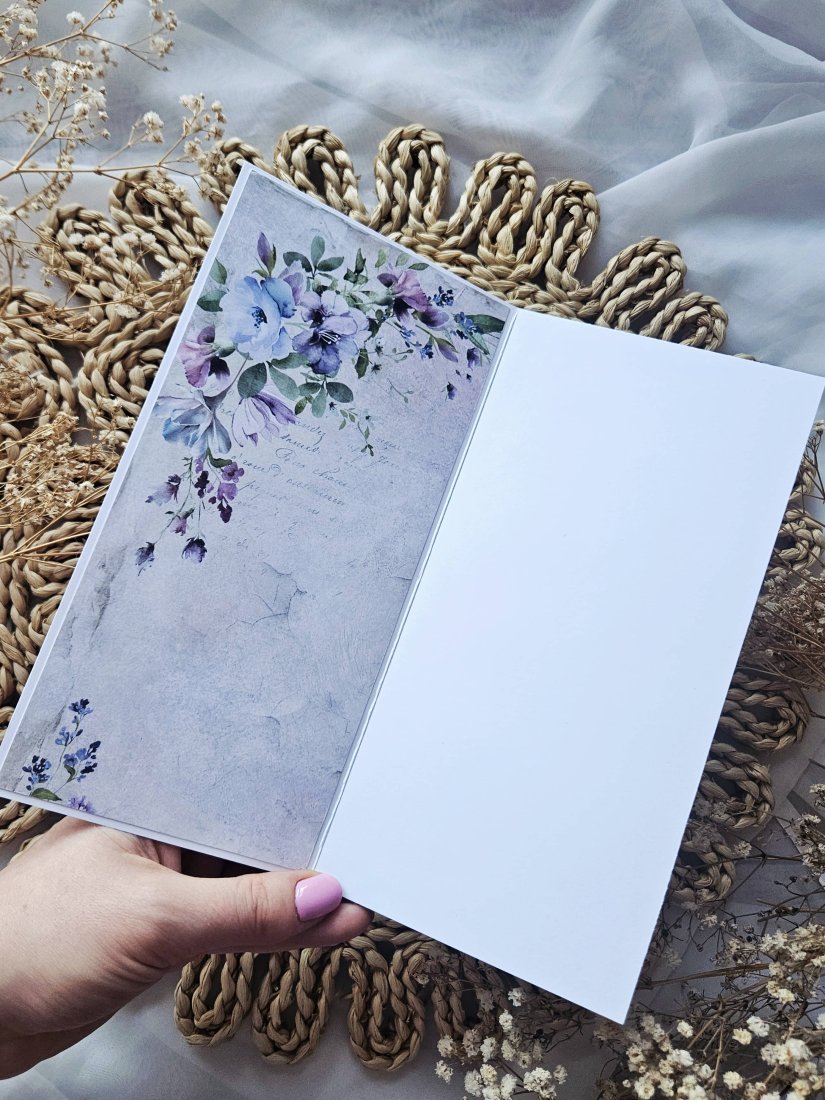 W środku miejsce na życzenia. Mogę przesłać ci propozycje do wyboru, wydrukować i wkleić twoje życzenia lub pozostawić miejsce puste do samodzielnego uzupełnienia.