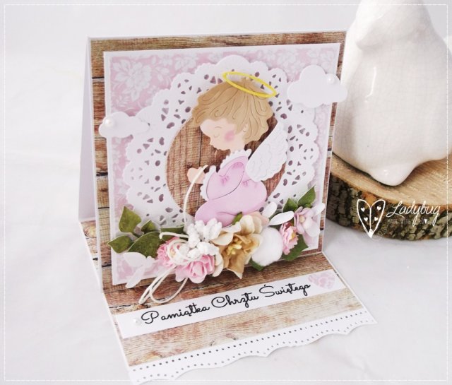 Pastelowy róż i faktura drewna współgra z klasycznym wyglądem całości, oddając przy tym dziecięcy wdzięk i podniosłość wydarzenia.