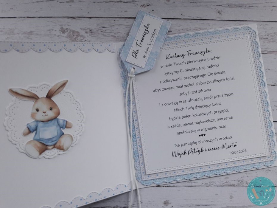 Tagi: #kartka na roczek chłopca, #kartka na roczek z misiem, #kartka z okazji 1 urodzin, #ładna kartka na roczek chłopca