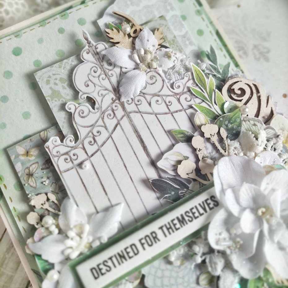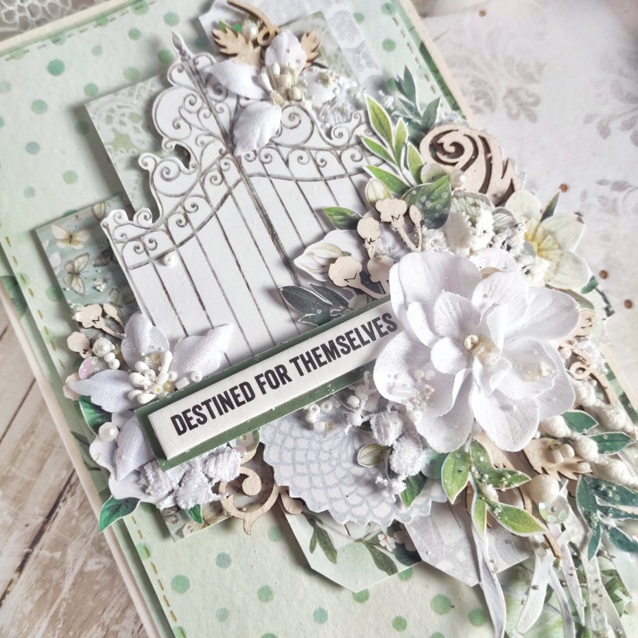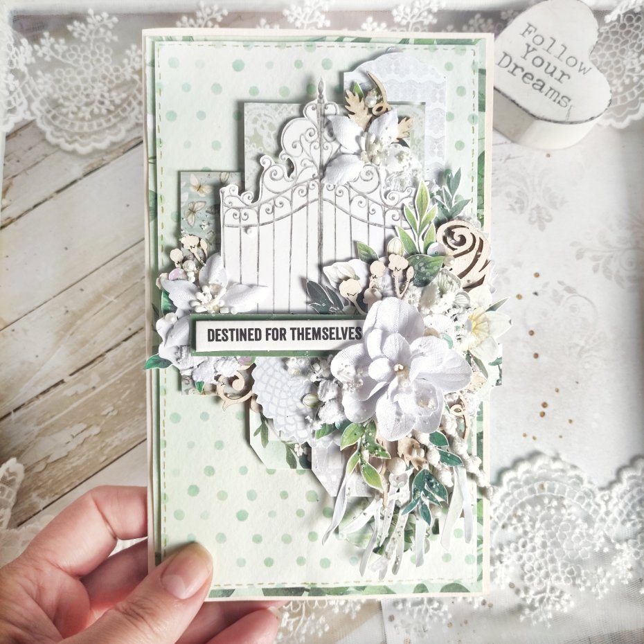 Każda kartka posiada unikalną kompozycję, wykonaną z delikatnej koronki oraz eleganckich kwiatków. Nie ma dwóch identycznych kartek — każda jest jedyna w swoim rodzaju.