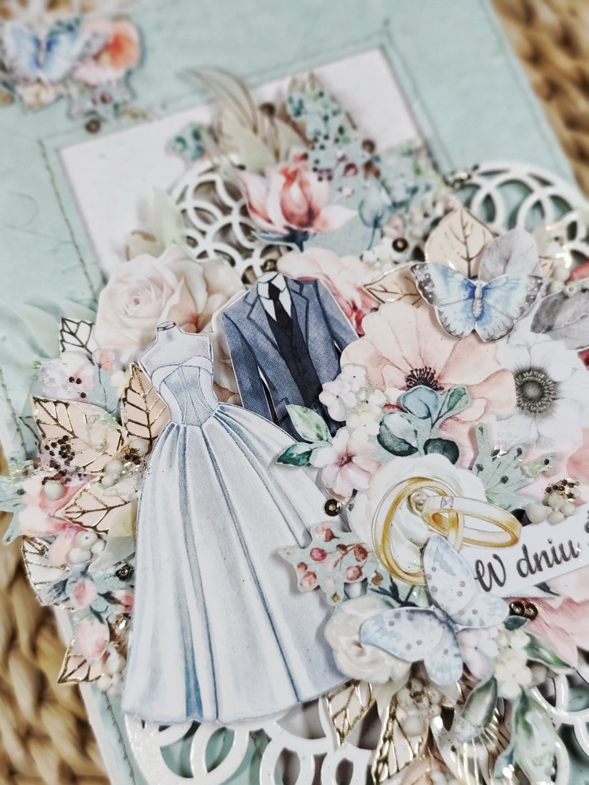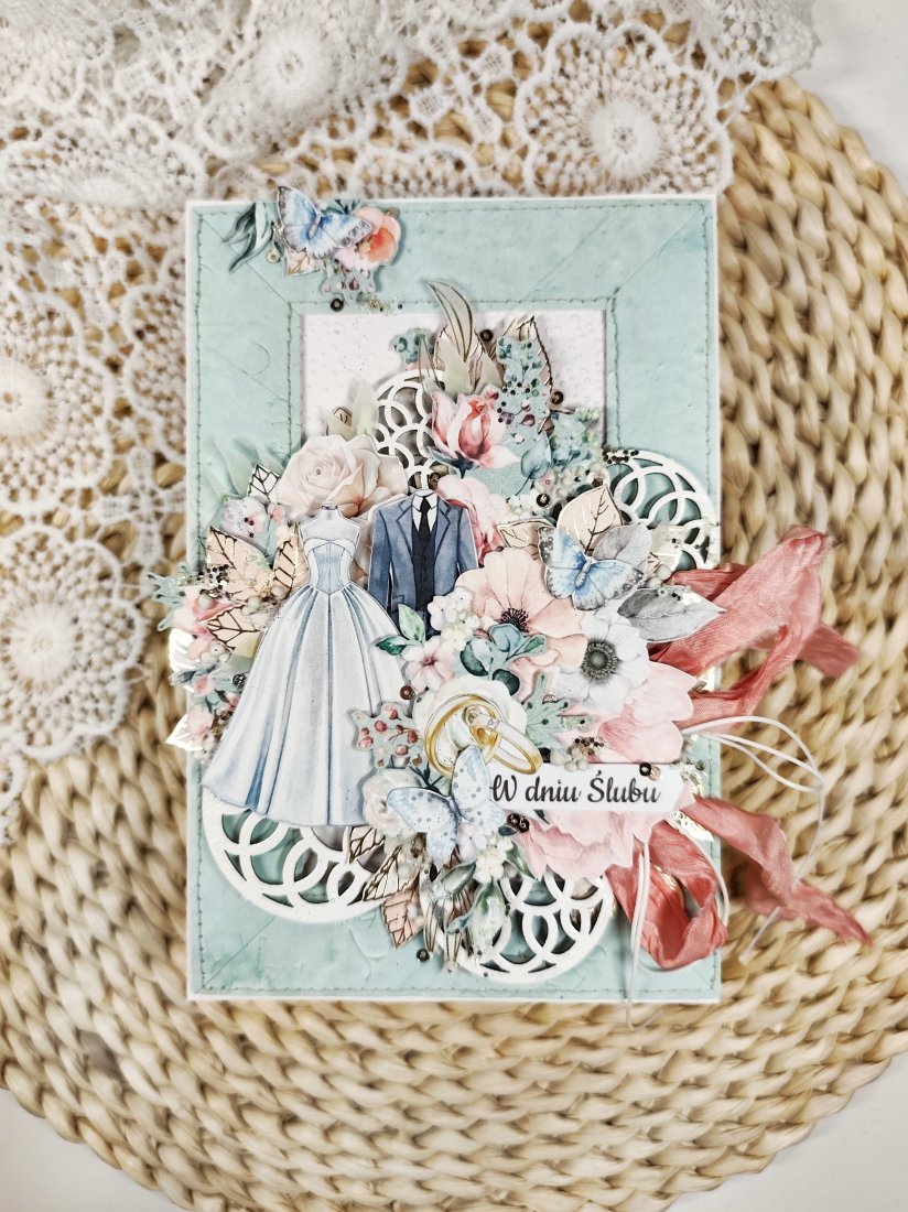 Każda kartka posiada unikalną kompozycję, wykonaną z delikatnej koronki oraz eleganckich kwiatków. Nie ma dwóch identycznych kartek — każda jest jedyna w swoim rodzaju.