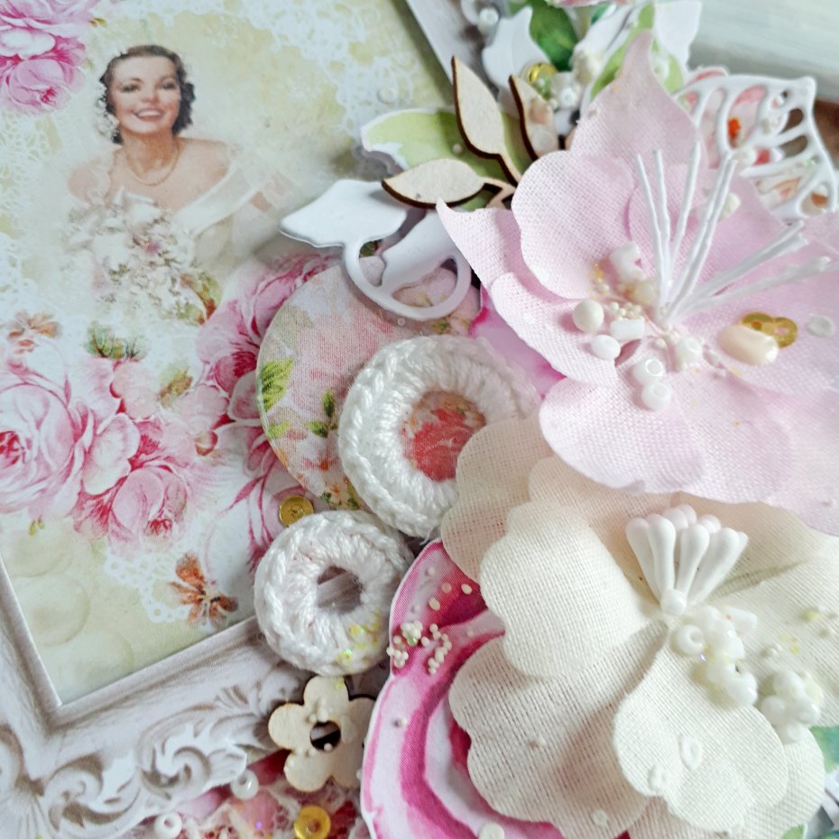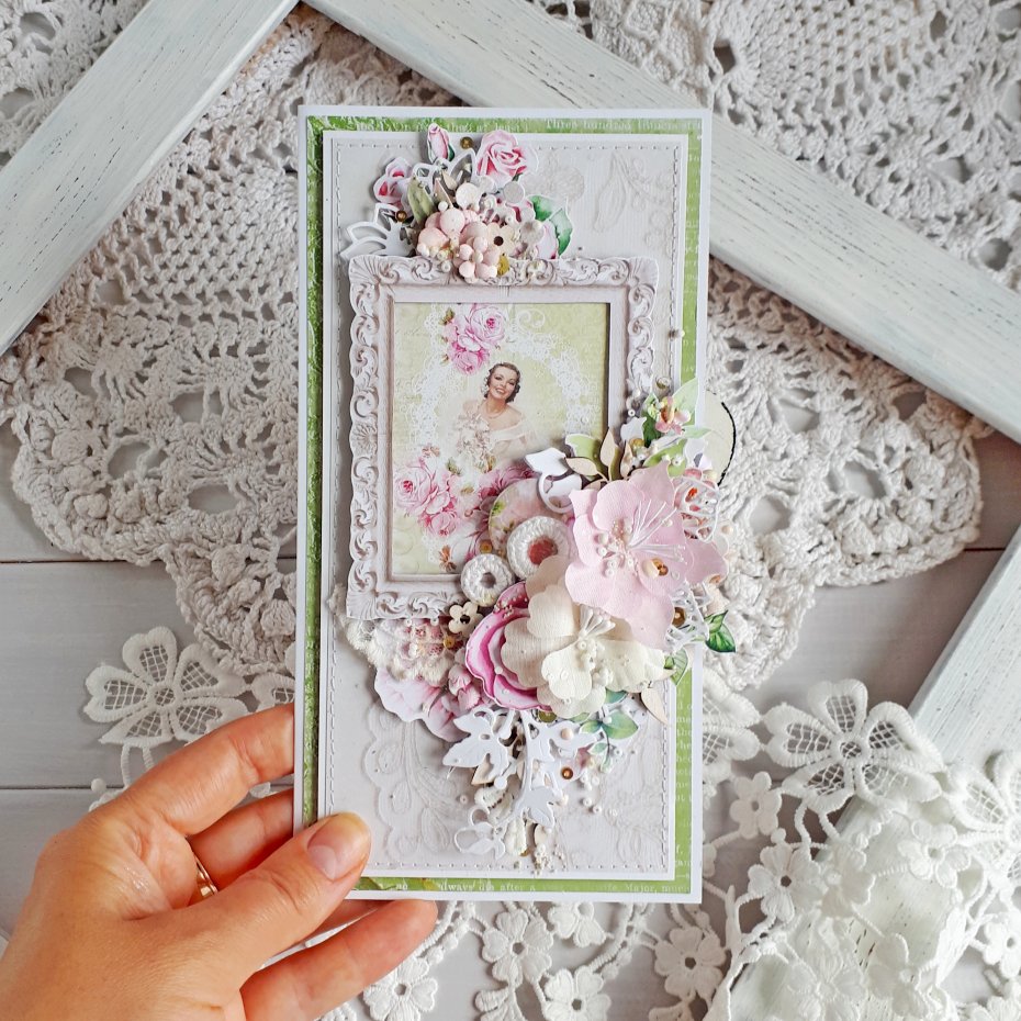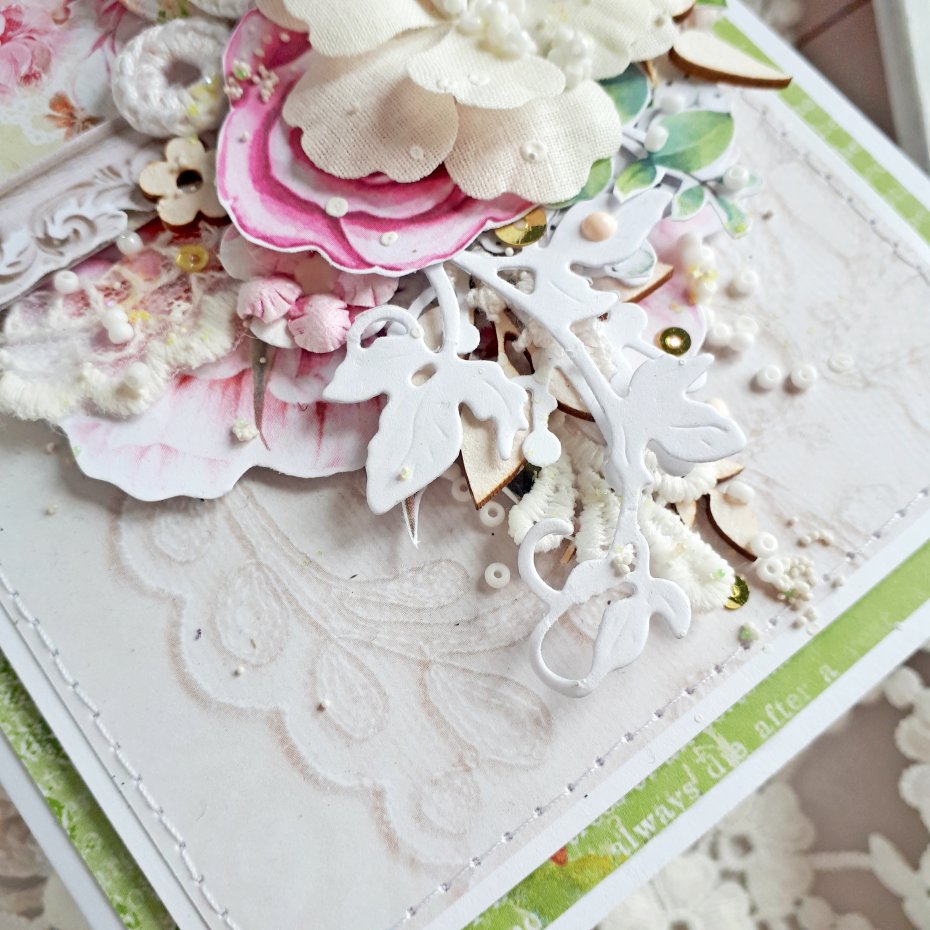 Każda kartka posiada unikalną kompozycję, wykonaną z delikatnej koronki oraz eleganckich kwiatków. Nie ma dwóch identycznych kartek — każda jest jedyna w swoim rodzaju.