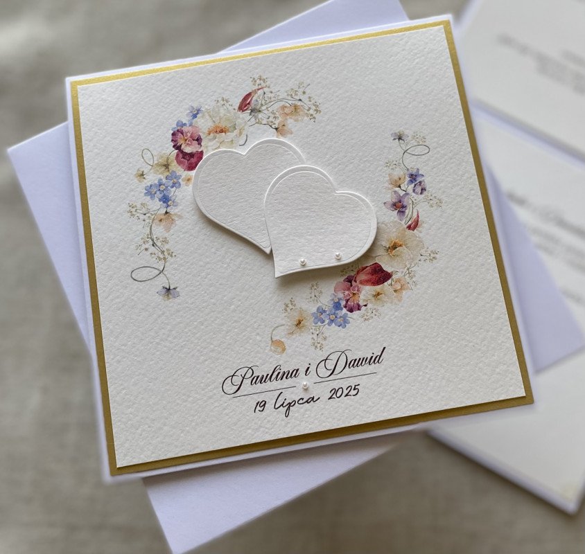 Zestaw z kwiatową grafiką, ręcznie wyciętym dekorem oraz ręcznie zdobioną kopertą.