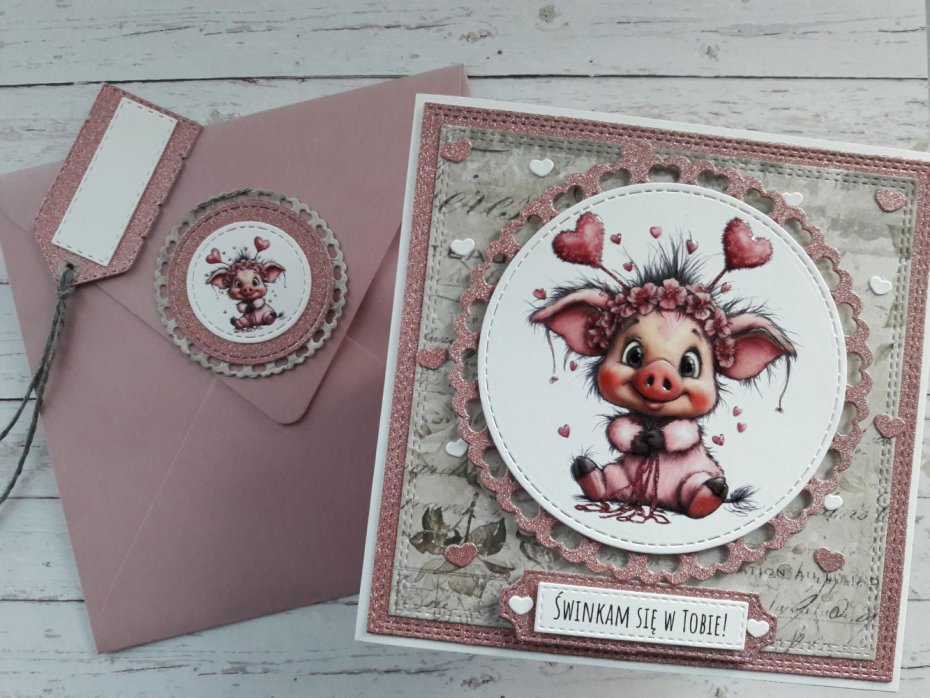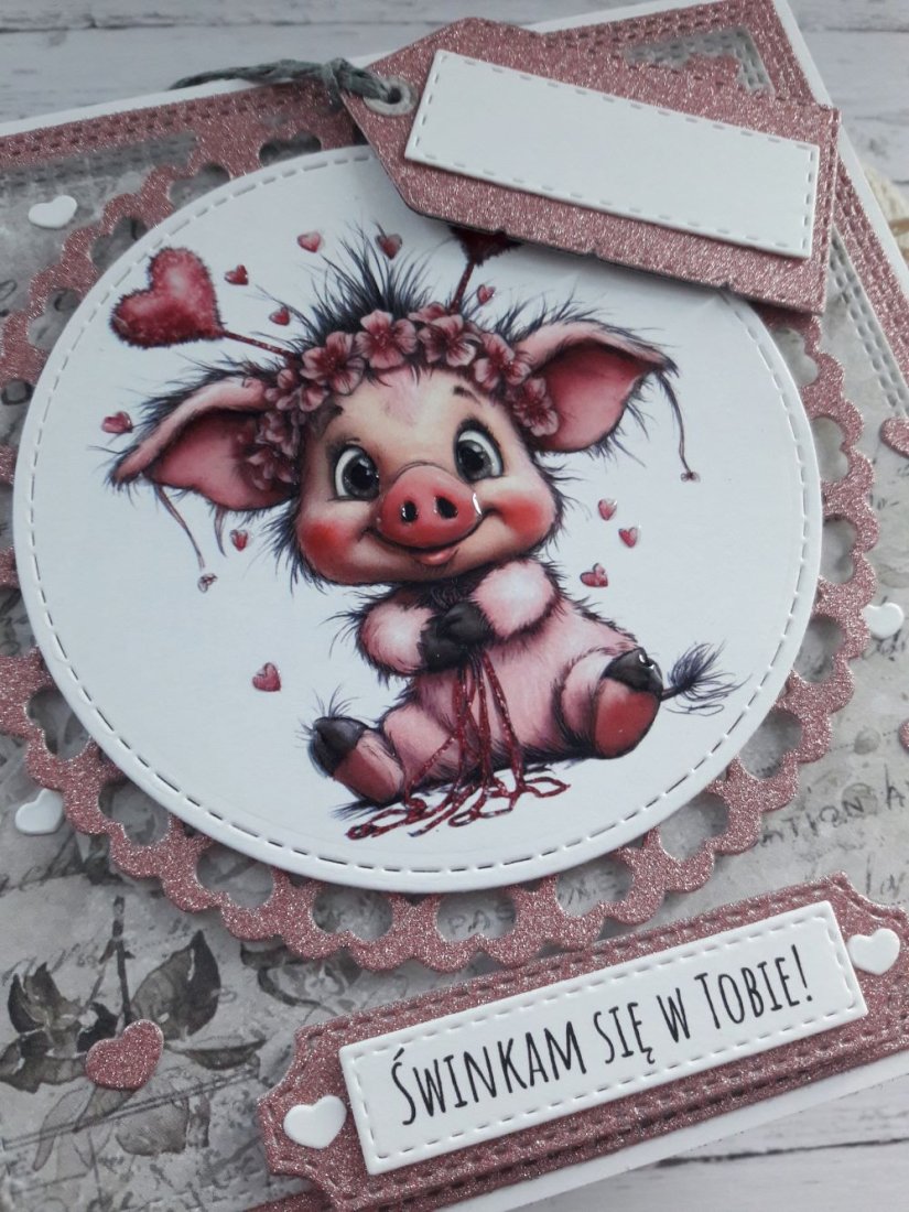 Tagi: #kartka na walentynki ze świnką, #kartka walentynkowa dla niego, #kartka walentynkowa ze świnką, #ładna kartka na walentynki