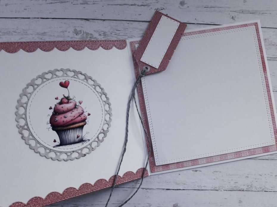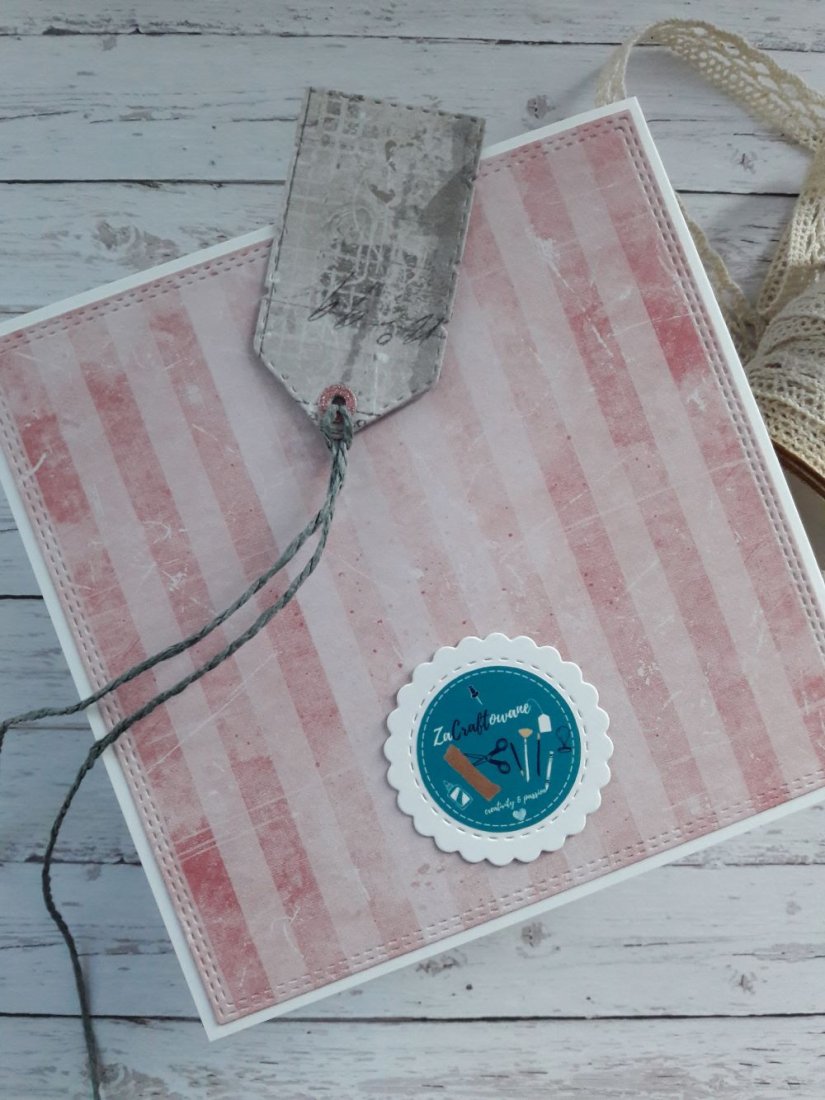 Do kartki dołączam GRATIS w postaci widocznej na zdjęciu etykietki, za pomocą której można podpisać upominek walentynkowy i przyczepić ją do wstążki, którą obwiązany jest prezent, za pomocą sznureczka, który również znajduje się w zestawie.