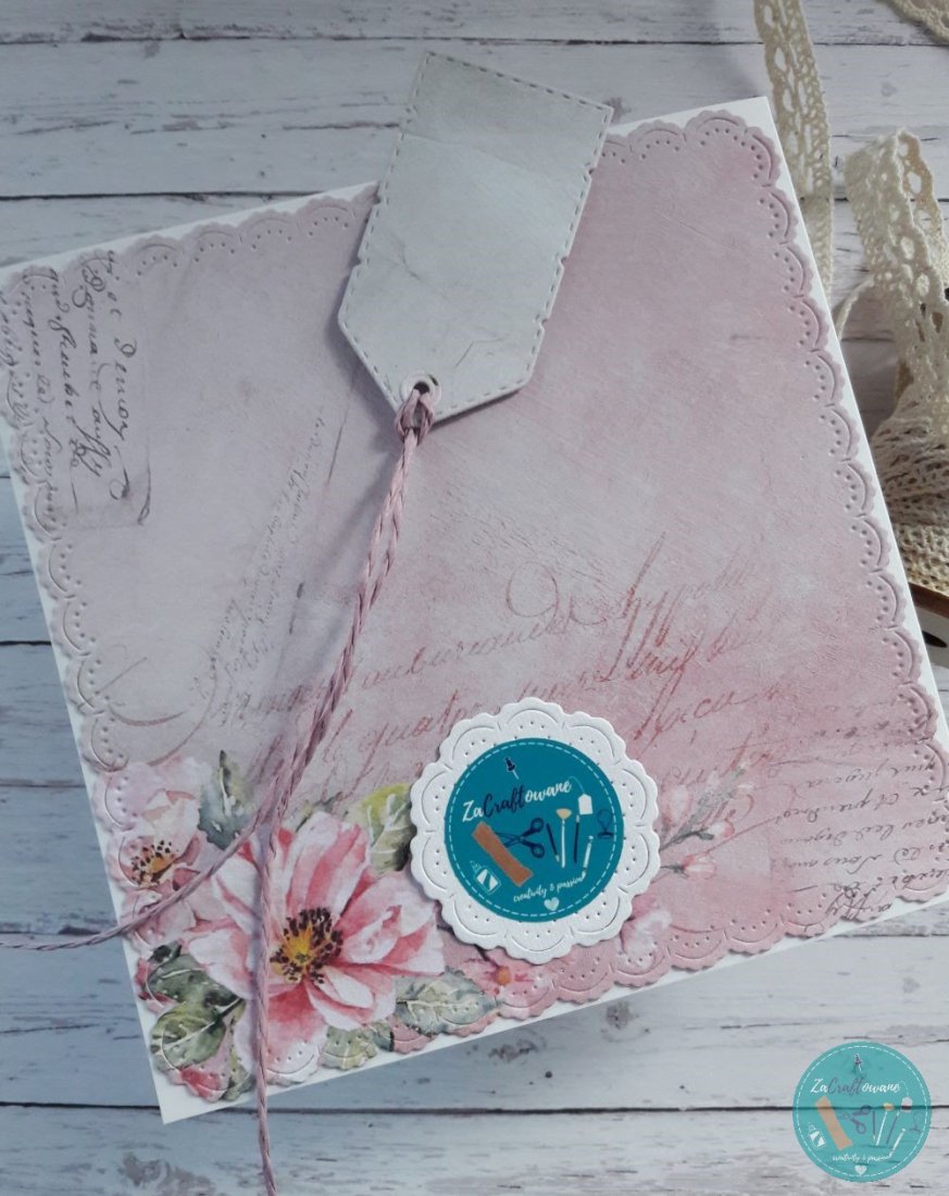 Koperta brudny róż: 15,3 cm × 15,3 cm.