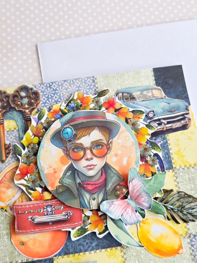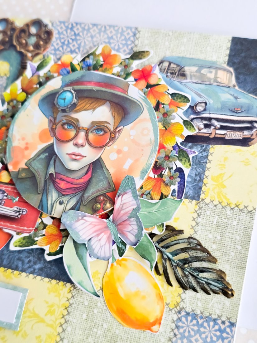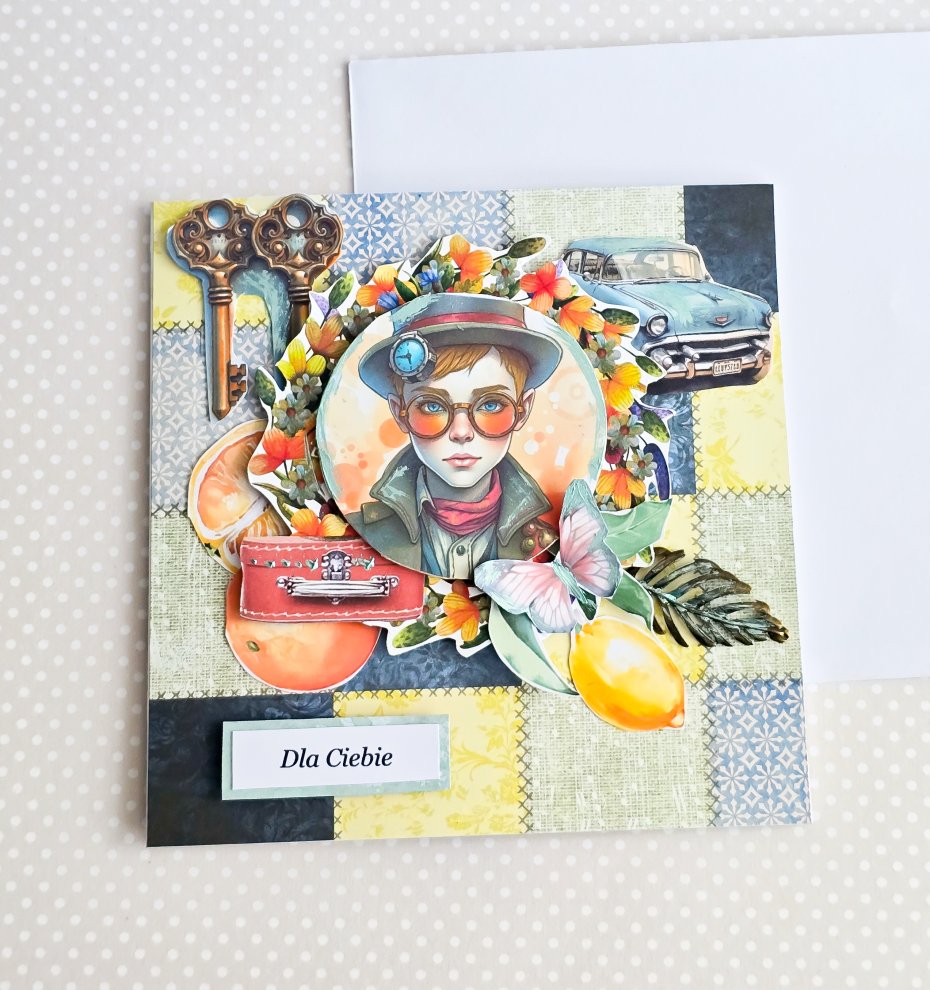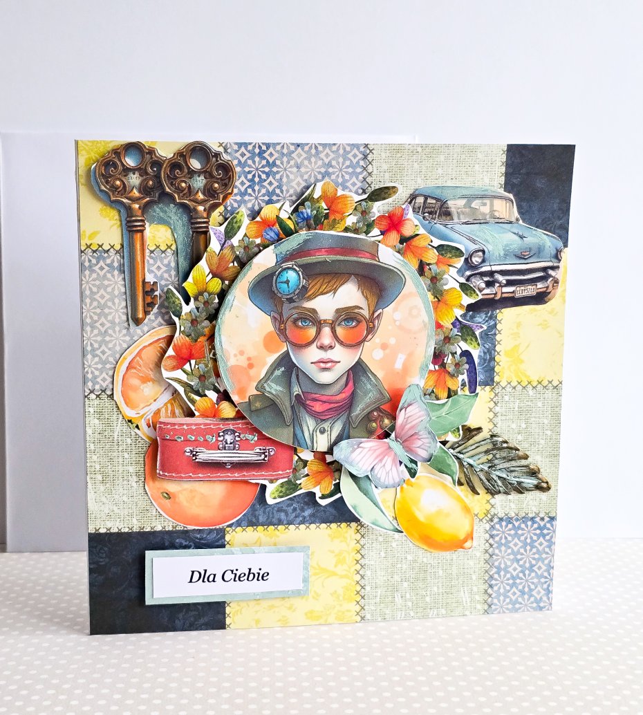 Wykonana metodą scrapbookingu z profesjonalnych materiałów