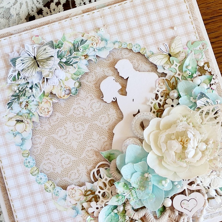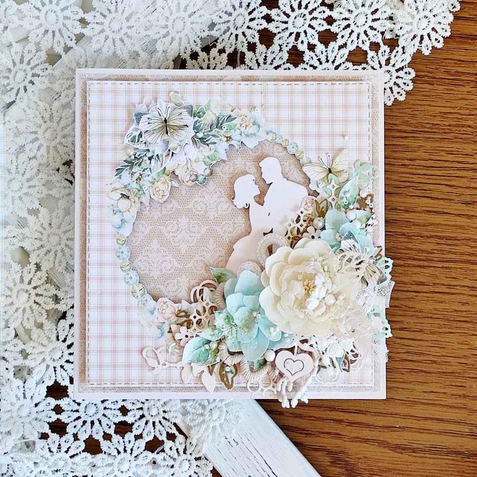 Każda kartka posiada unikalną kompozycję, wykonaną z delikatnej koronki oraz eleganckich kwiatków. Nie ma dwóch identycznych kartek — każda jest jedyna w swoim rodzaju.
