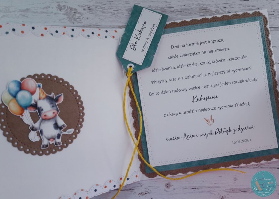 - dowolnego napisu z przodu np. "[Kubusiu], w dniu Twoich 4. urodzin"