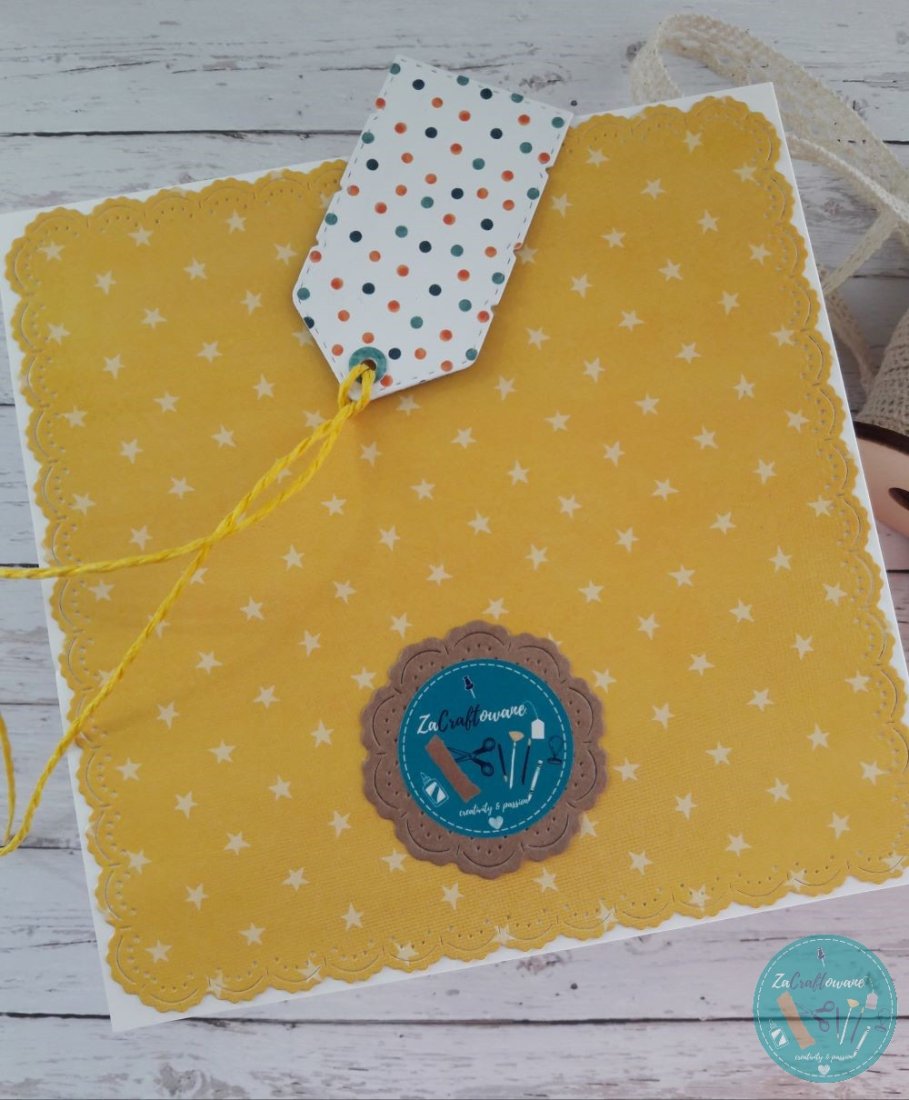 Do kartki dołączam GRATIS w postaci widocznej na zdjęciu etykietki, za pomocą której można podpisać upominek dla solenizanta/solenizantki i przyczepić ją do wstążki, którą obwiązany jest prezent, za pomocą sznureczka, który również znajduje się w zestawie.